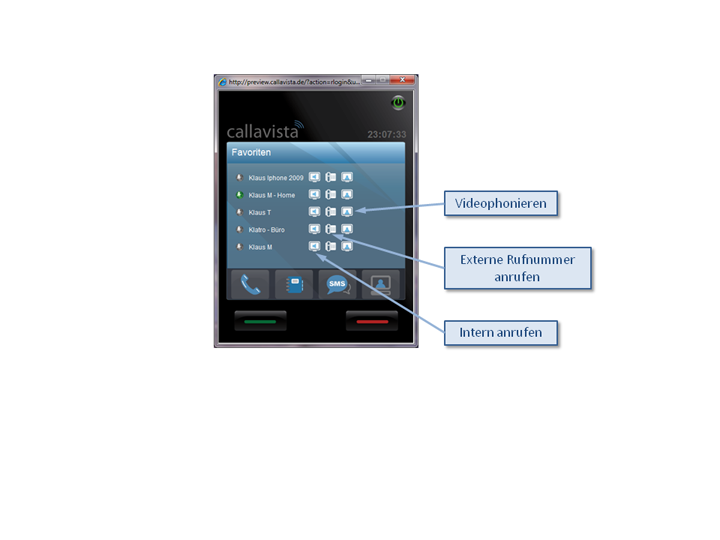 Oder aber die Kommunikation innerhalb unserer Community mit dem von uns entwickelten Video-Telefon. Callavista Kunden haben die Möglichkeit mit ihren Freunden und Verwandten nicht nur zu telefonieren, sondern auch Video-Telefonieren. Jeder kann jeden anrufen mit dem Callavista Phone.